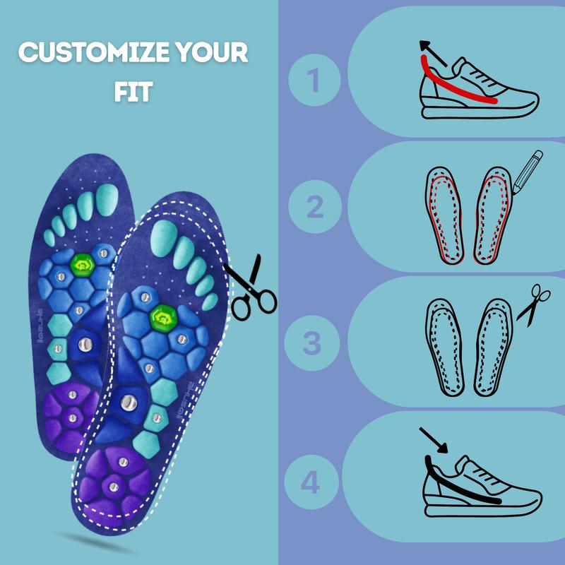 💡 PROSTA OBSŁUGA: Dotnij wkładki wzdłuż wyznaczonych linii, aby idealnie dopasować je do swojego rozmiaru i cieszyć się komfortem „szytym na miarę”.