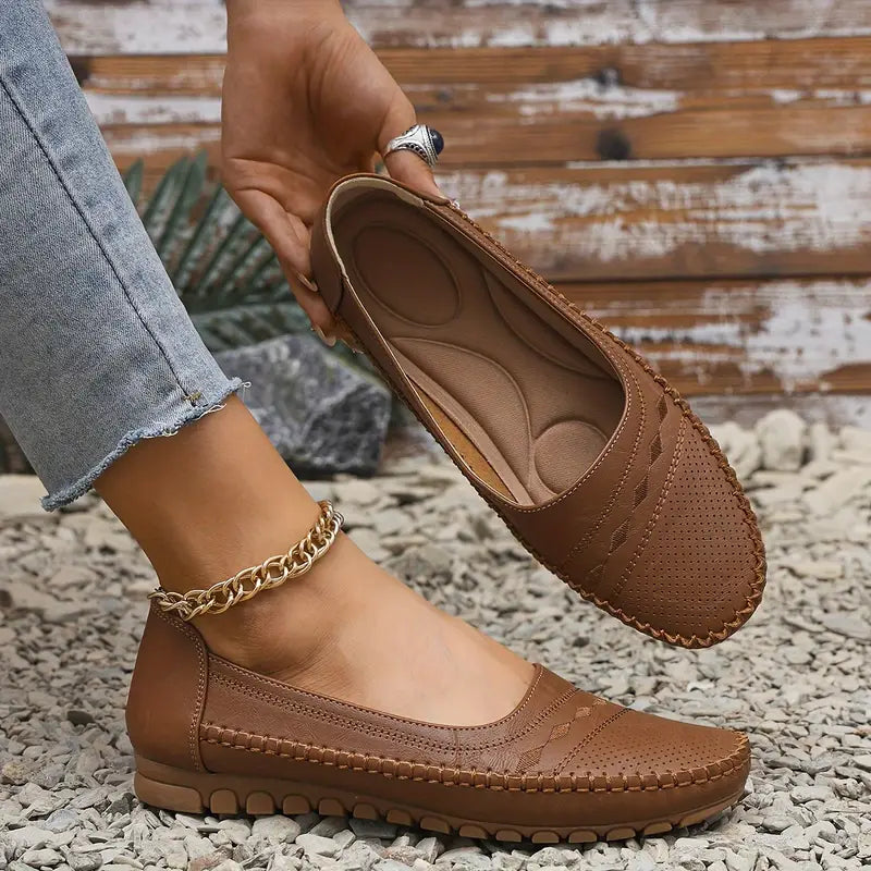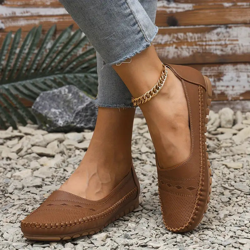 Zaprojektowane z myślą o eleganckim, minimalistycznym wyglądzie, te wsuwane buty oferują doskonałą równowagę między modą a praktycznością. Haftowane przeszycia dodają im subtelnej elegancji, a miękka, amortyzowana podeszwa zapewnia maksymalny komfort na każdym kroku. Bez względu na to, czy załatwiasz sprawy na mieście, idziesz do pracy, czy spędzasz swobodny dzień poza domem, te uniwersalne mokasyny to obowiązkowy element Twojej garderoby.